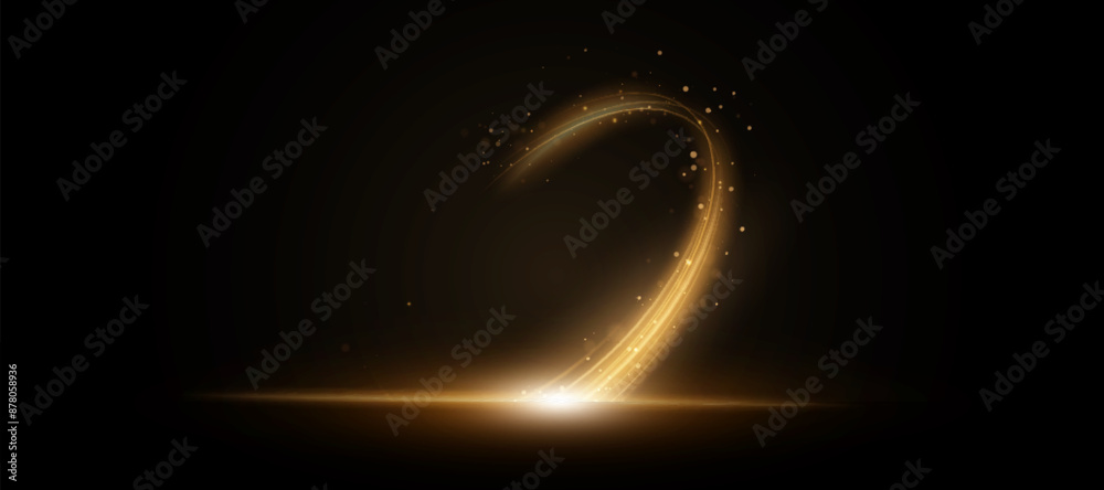 The watermark will not be included on Wall mural.: Golden magic comet light effect with lots of sparkling bokke and shimmering light effects - magic gol