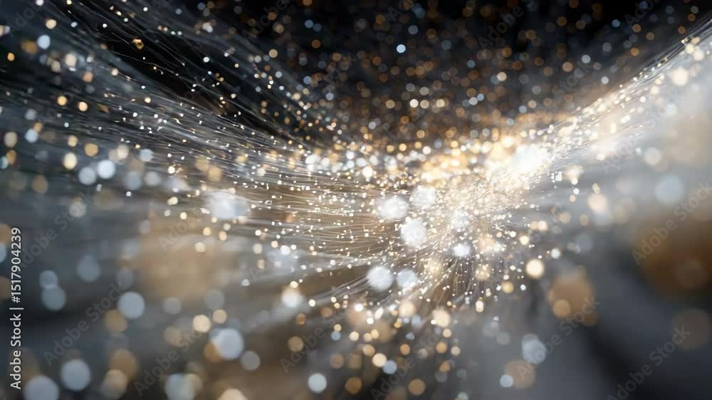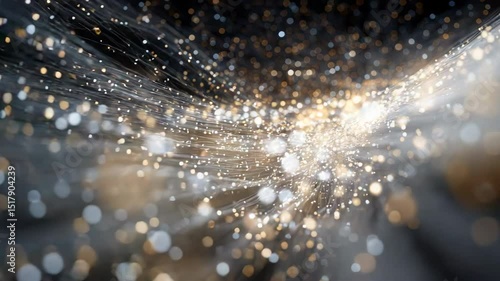 Wall mural golden particles are flowing smoothly on a black background, creating a mesmerizing and elegant visu