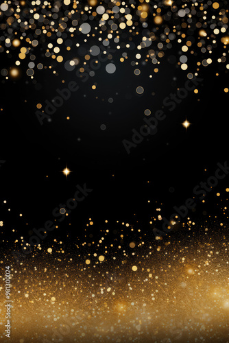 Wall mural golden particles create a beautiful bokeh effect on a vibrant black background. perfect for festive