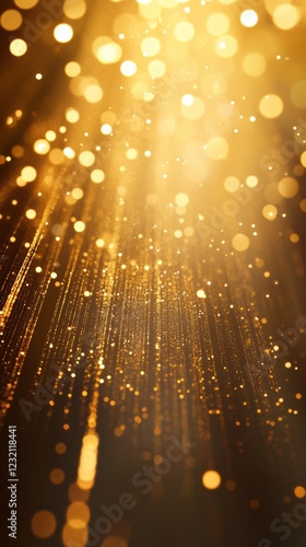 Wall mural : Golden particles falling creating beautiful bokeh effect on dark background