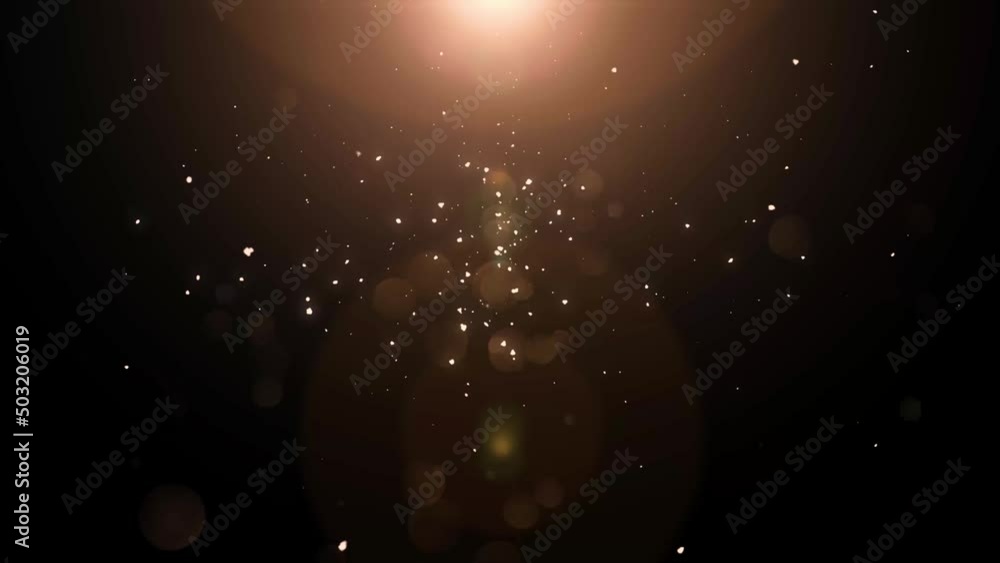 Wall mural golden particles falling down bokeh abstract background with shining gold dust particles flare star