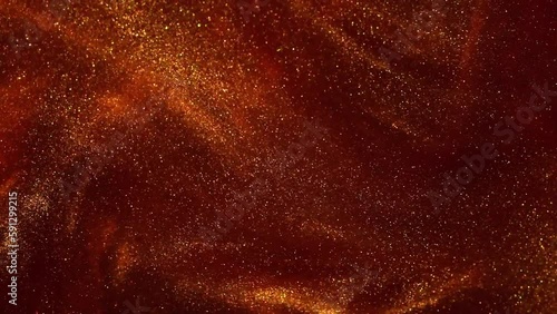 Wall mural golden particles floating in red liquid. vortex of gold dust particles swirl and abstract float in r - Wall murals Wall mural golden particles floating in red liquid. vortex of gold dust particles swirl and abstract float in r - Wall murals
