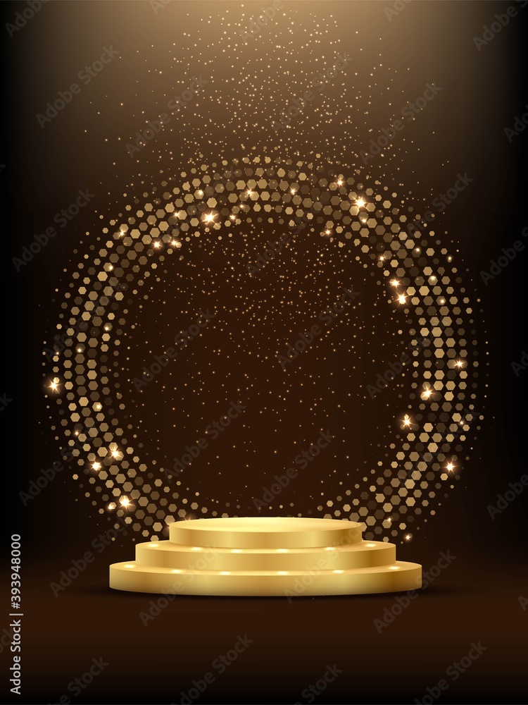 The watermark will not be included on Wall mural.: Golden podium with haflftone circle ring and glitter - shining abstract background with gold elements