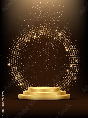 Wall mural golden podium with haflftone circle ring and glitter. shining abstract background with gold elements