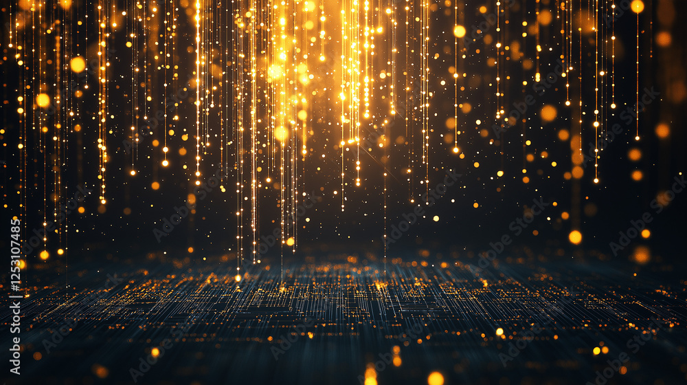 Wall mural golden rain abstract: a mesmerizing abstract backdrop of a golden rain of light cascading down, illu