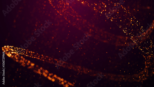 Wall mural golden red glow particles flicker and float in viscous liquid with amazing bokeh. fantastic backgrou