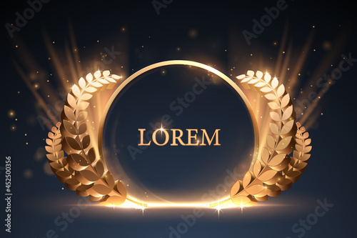 The watermark will not be included on Wall mural.: Golden ring and laurel wreath with light effect