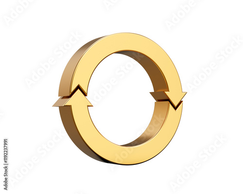 Wall mural : Golden rounded clockwise arrow loop symbolizes recycling and continuous rotation 3d illustration