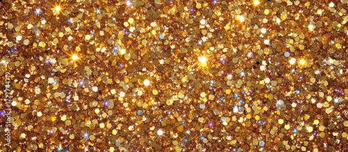 Wall mural golden shimmering glitter background with sparkles and stars and empty space for your creative text