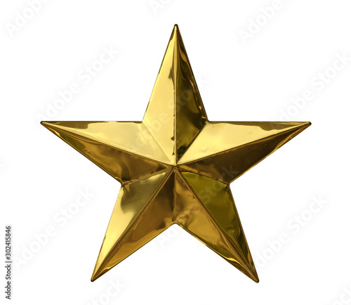 The watermark will not be included on Wall mural.: Golden star christmas decoration (with clipping path) isolated on white background