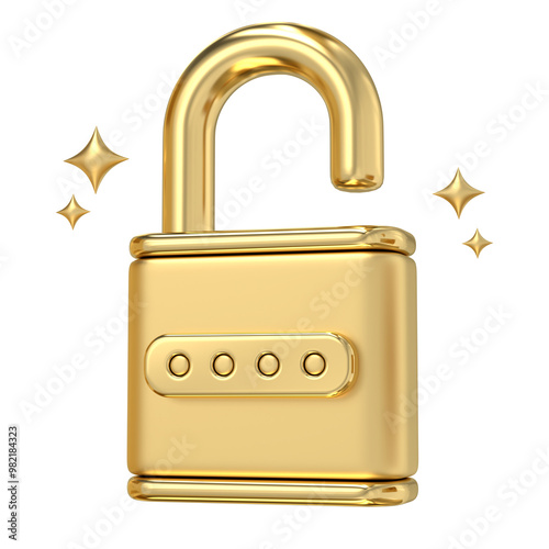 Wall mural golden unlocked padlock, a gleaming symbol of access and security, this 3d rendering of an unlocked