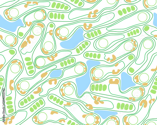 The watermark will not be included on Wall mural.: Golf course layout seamless pattern - top view of vector map outline blueprint