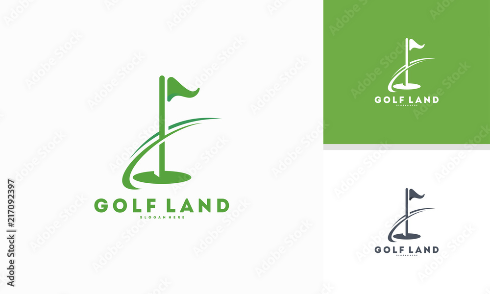 The watermark will not be included on Wall mural.: Golf land logo designs concept vector, golf flag with swoosh logo