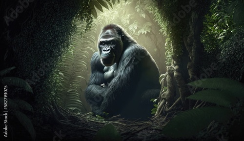 Wall mural gorilla hidden in the forest. created with generative ai. - Wall murals Wall mural gorilla hidden in the forest. created with generative ai. - Wall murals