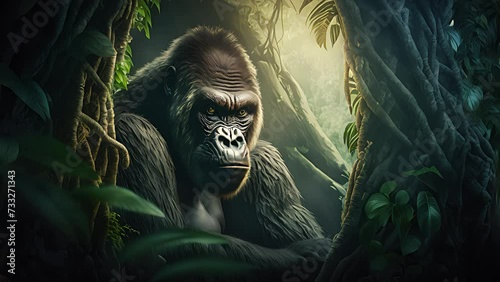 Wall mural : Gorilla hidden in the forest - created with generative ai -
