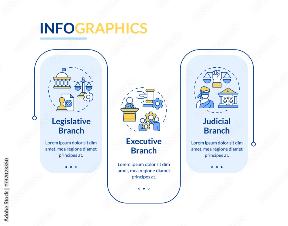 The watermark will not be included on Wall mural.: Government branch structure rectangle infographic template - data visualization with 3 steps - editabl