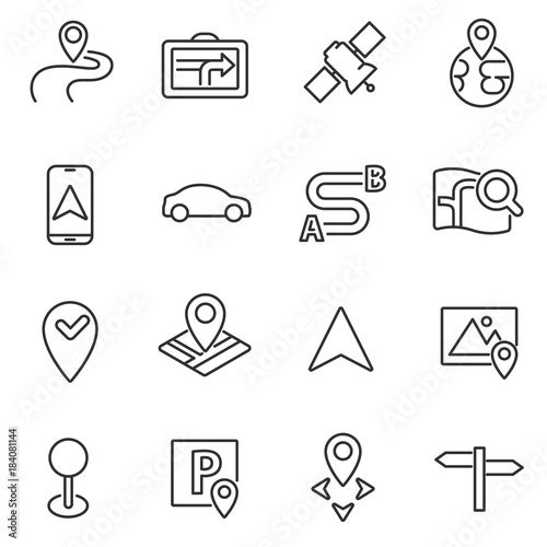 The watermark will not be included on Wall mural.: Gps navigation system linear icon set - line with editable stroke