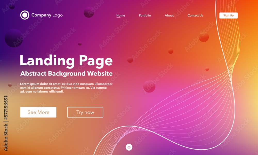 Gradient abstract wave background - landing page - template for websites with bubble - modern design - dWall mural