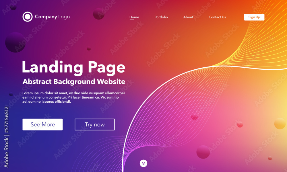 Gradient abstract wave background - landing page - template for websites with bubble - modern design - dWall mural