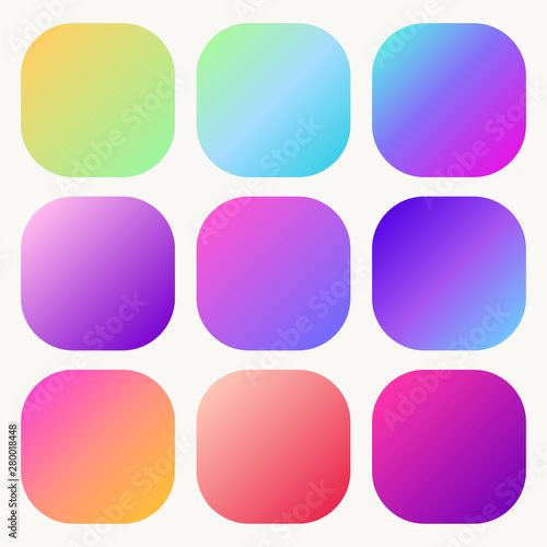 The watermark will not be included on Wall mural.: Gradient holographic button set Trendy soft Multicolor fluid covers - Vector