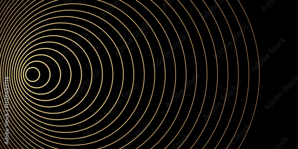 The watermark will not be included on Wall mural.: Gradient light equalizer gold wavy curve - abstract background with concentric circles in luxury gold