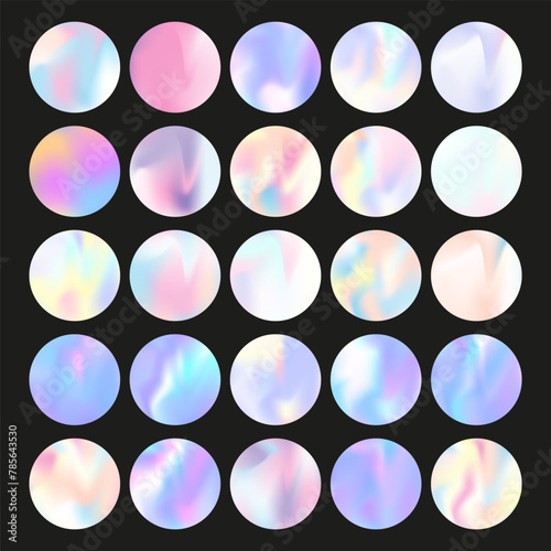 The watermark will not be included on Wall mural.: Gradient round set with holographic mesh - abstract hologram - rainbow gradient round set - minimalisti