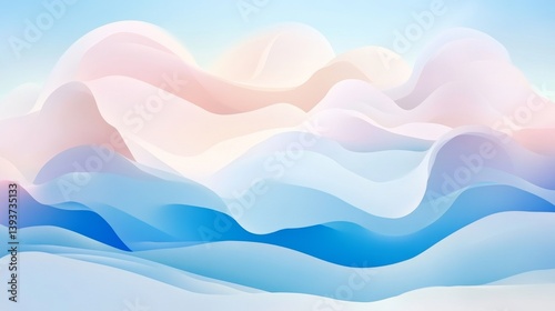 The watermark will not be included on Wall mural.: Gradient waves cascade in cool blues and soft peach hues in layered abstract