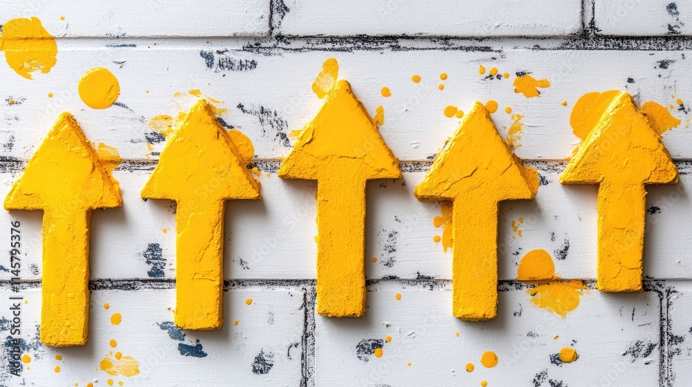 The watermark will not be included on Wall mural.: Graph paper background with vibrant yellow textured arrows representing direction and progress in a