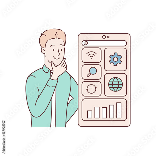 Wall mural graphic designer, programmer. software architecture abstract metaphor. mobile app development proces