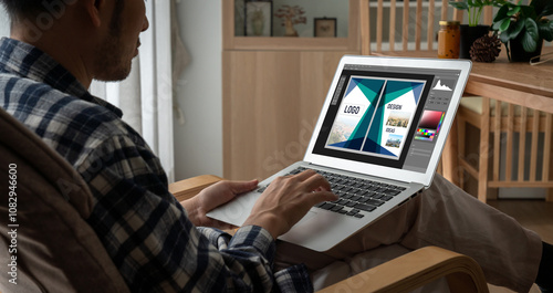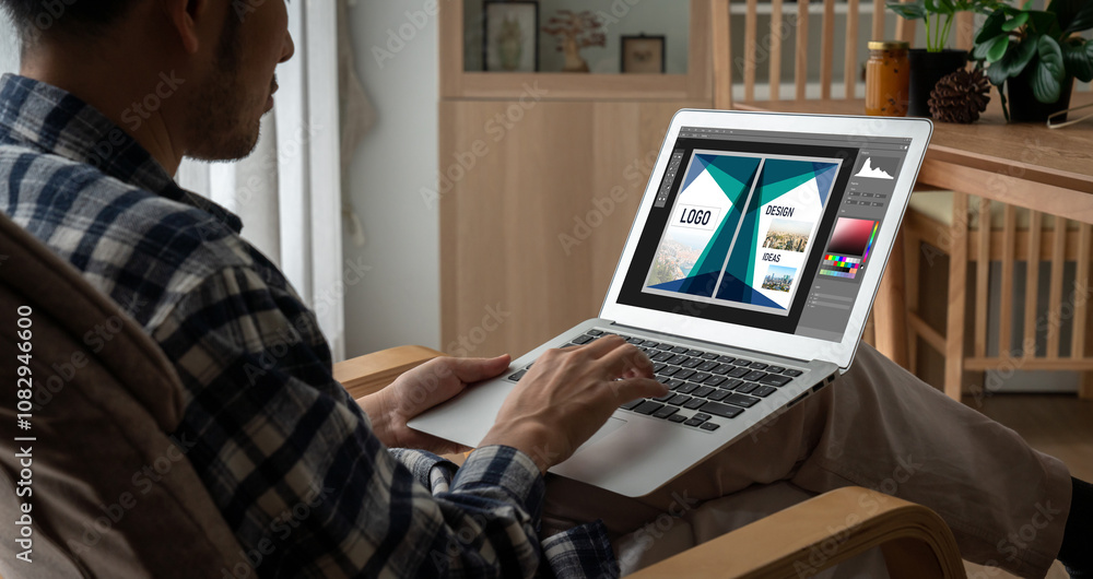 The watermark will not be included on Wall mural.: Graphic designer software for modern design of web page and commercial ads showing on the computer s