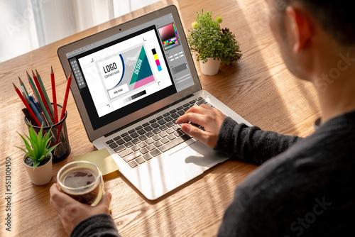 The watermark will not be included on Wall mural.: Graphic designer software for modern design of web page and commercial ads showing on the computer s