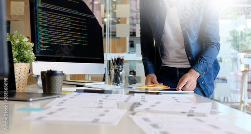 Wall mural : Graphic designer ui ux creative sketch planning application web for smart phone