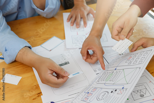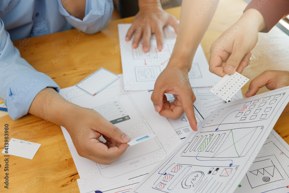 Wall mural : Graphic designers work together with ux ui designer planning application template layout framework f