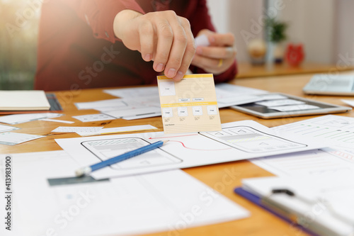 Wall mural : Graphic designers work together with ux ui designer planning application template layout framework f