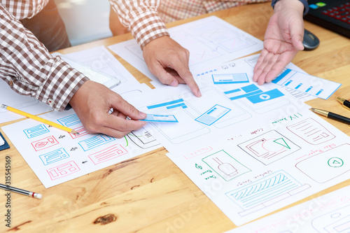 Wall mural : Graphic designers work together with ux ui designer planning application template layout framework f