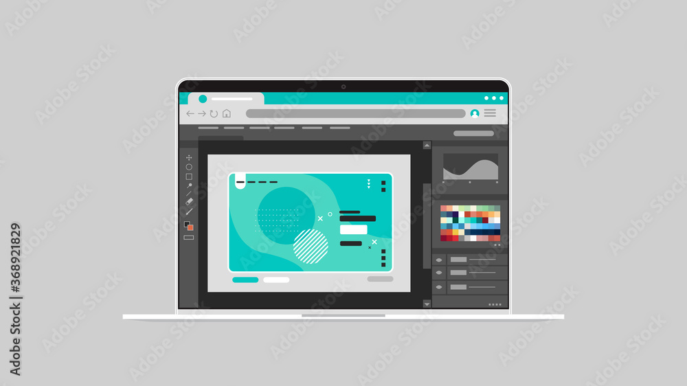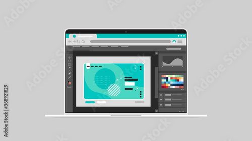 The watermark will not be included on Wall mural.: Graphic editor on laptop screen creative content configuration design concept horizontal vector illu