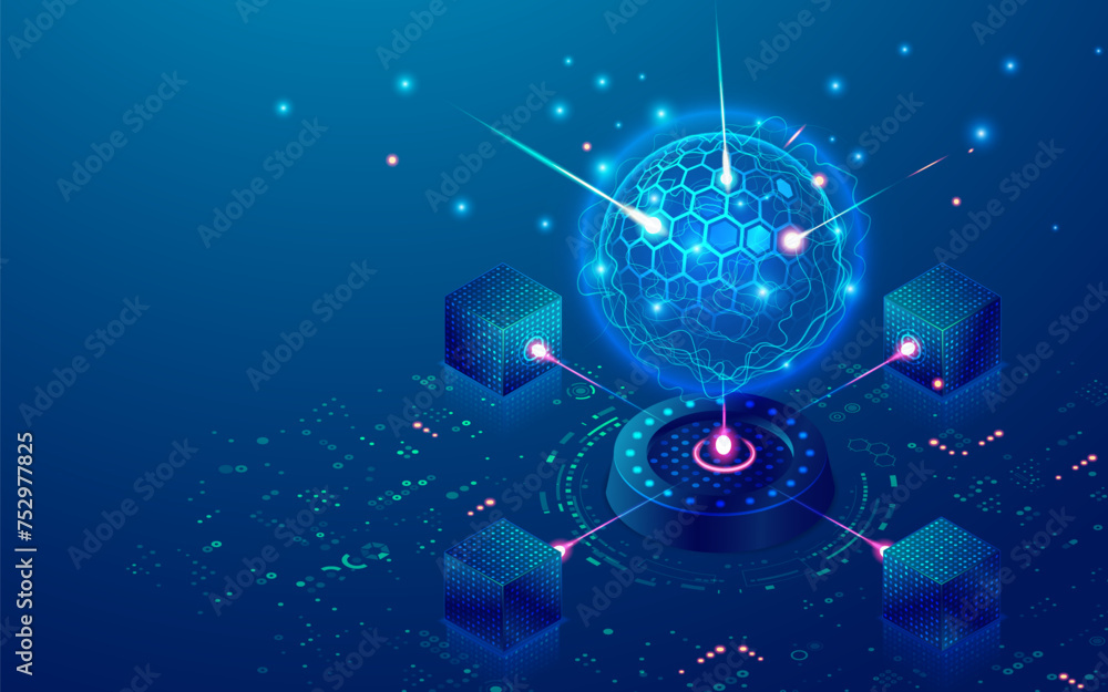 The watermark will not be included on Wall mural.: Graphic of quantum computer presented with isometric view