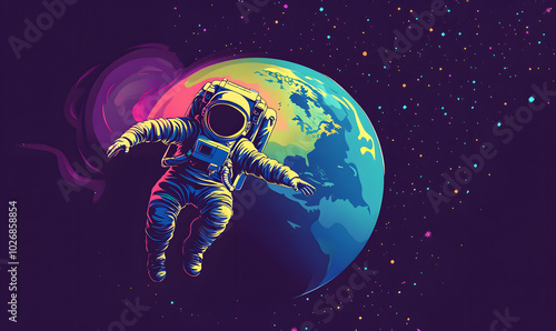 The watermark will not be included on Wall mural.: Graphics of space, planets, and astronauts on a white background -