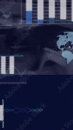 Wall mural graphs and globe animation over abstract dark background with data processing - Wall murals Wall mural graphs and globe animation over abstract dark background with data processing - Wall murals