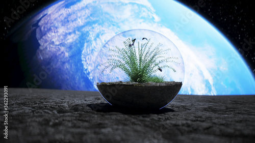 Wall mural grass in glass sphere in outer space. ecology concept. 3d rendering. - Wall murals Wall mural grass in glass sphere in outer space. ecology concept. 3d rendering. - Wall murals