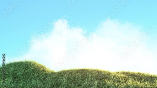 The watermark will not be included on Wall mural.: Grass wind slow with blue sky background loop - background on a seamless loop -