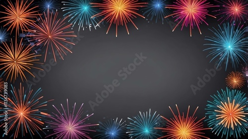 The watermark will not be included on Wall mural.: Gray background with border frame of colorful fireworks