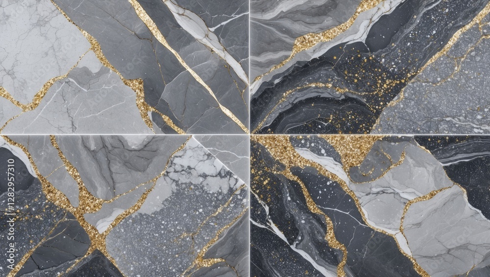 Gray marble texture with golden veins in a tiled pattern suitable for backgrounds and design projectWall mural