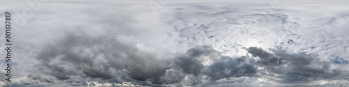Wall mural gray sky hdri 360 panorama with dark clouds before storm in seamless projection with zenith for use