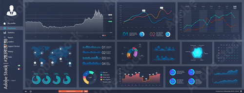 Wall mural great dashboard ui,ux,kit infographic template. modern web app ui with graphs round bars and charts, - Wall murals Wall mural great dashboard ui,ux,kit infographic template. modern web app ui with graphs round bars and charts, - Wall murals