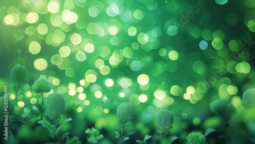The watermark will not be included on Wall mural.: Green abstract background with blurred bokeh effect and soft focus on plants and foliage - vibrant na