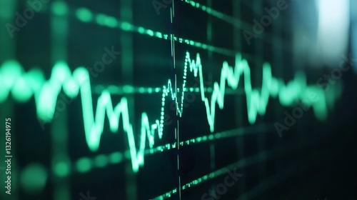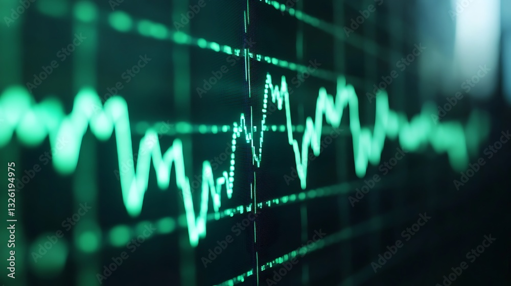 Wall mural green abstract graphical representation of data trends with fluctuating waveform patterns on a digit - Wall murals Wall mural green abstract graphical representation of data trends with fluctuating waveform patterns on a digit - Wall murals
