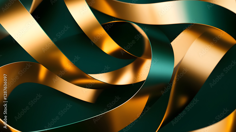Wall mural : Green and gold abstract background with a smooth curved design and texture for graphic use