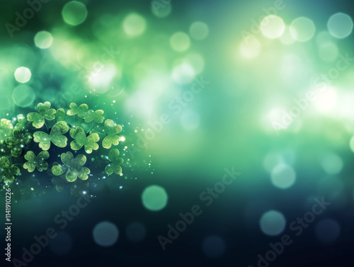 The watermark will not be included on Wall mural.: Green background with a bunch of clovers - the clovers are green and are scattered throughout the bac