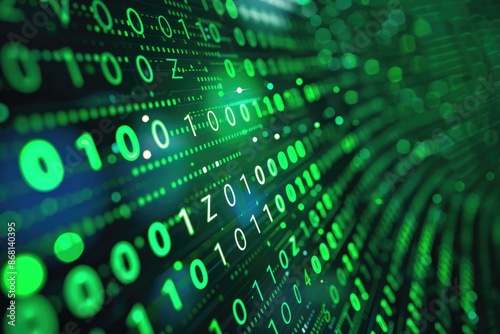 Wall mural : Green binary code on computer screen texture background - binary code binary code